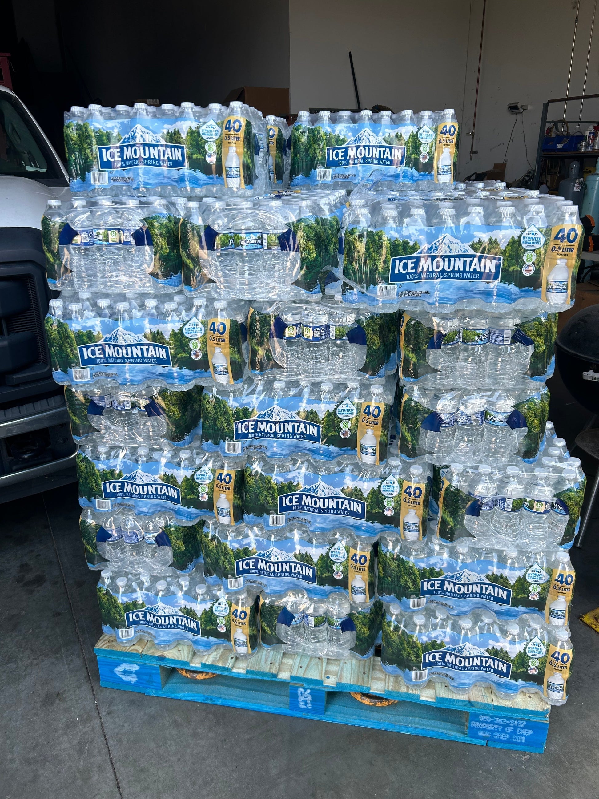Answer 2: We carry a range of essentials including bottled water by the pallet, office and breakroom supplies, and gear for drivers or on-the-go teams.